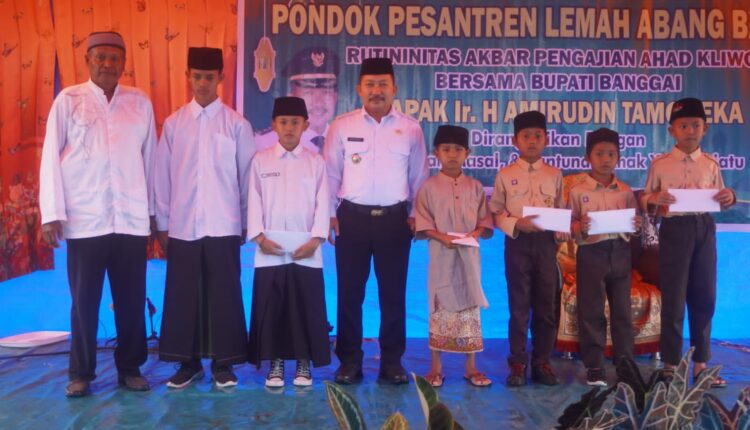 BANGGAI, OKENESIA.COM- Bupati Banggai, Amirudin mengajak umat muslim untuk bersama membangun pondok pesantren demi pengembangan pendidikan akhlak dan keagamaan. Pesan moral itu disampaikan Bupati Amirudin saat menghadiri kegiatan rutin pengajian Ahad Kliwon yang dirangkaikan dengan khitanan masal serta pemberian santunan kepada anak-anak yatim piatu yang diinisiasi oleh Yayasan Lemah Abang Banggai, bertempat di Pondok Pesantren Lemah Abang, Banggai, Jalan Taman Sari, Desa Mekar Sari, Kecamatan Toili Barat, Rabu (23/8/2023).