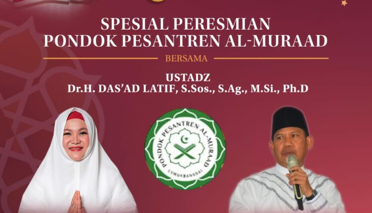 BANGGAI, OKENESIA.COM- Ustadz tersohor asal Sulawesi Selatan, Das’ad Latif diagendakan akan meresmikan Pondok Pesantren (Ponpes) Al-Murad, Kota Luwuk, Kabupaten Banggai.