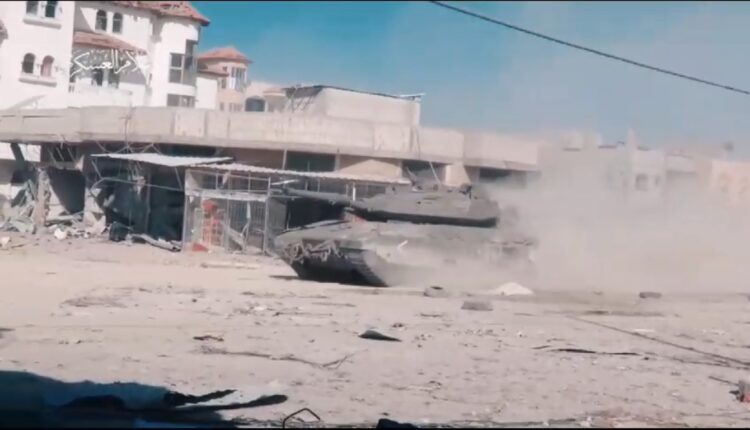Tank dan buldoser milik Israel di lingkungan al-Zaytun di Kota Gaza dihajar dengan RPG Al-Yasin 105, penghancur andalan pejuang Palestina.