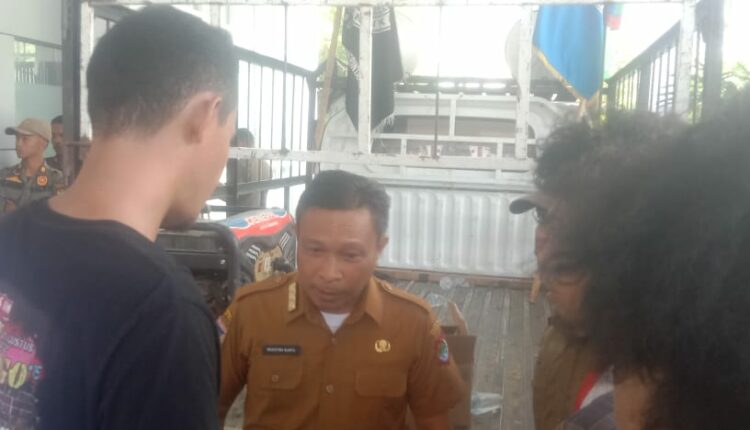 Kabag Persidangan Sekretariat DPRD Banggai, Mukhtar Kanti menemui massa aksi.