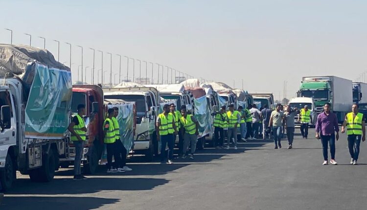 Truk bantuan pangan berbaris mengular di penyeberangan Rafah, Mesir. Militer Israel tak mengizinkan bantuan itu masuk Jalur Gaza. Kebijakan blokade pangan yang diterapkan militer Israel itu mengabaikan resolusi Dewan Keamanan PBB dan Mahkamah Internasional. (top/**)