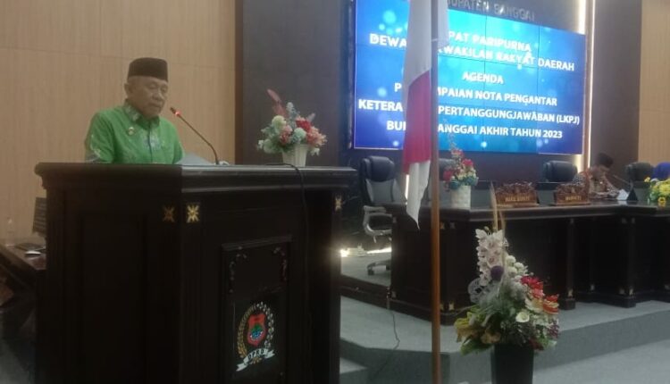 Wakil Bupati Banggai, Furqanuddin Masulili saat menyampaikan nota pengantar Laporan Keterangan Pertanggungjawaban (LKPj) Bupati Banggai akhir tahun anggaran 2023 di agenda rapat paripurna DPRD Banggai, Senin (1/4/2024) malam menguraikan pencapaian-pencapaian progresif Pemda Banggai.