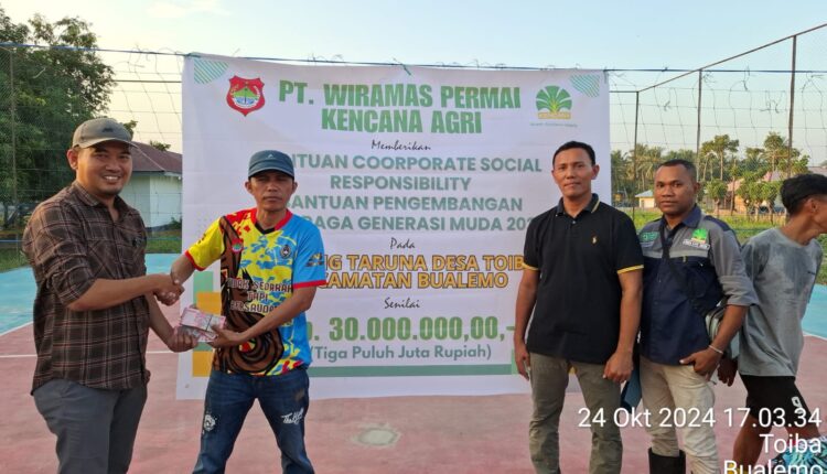 BANGGAI, OKENESIA.COM- Dalam langkah nyata untuk mendukung kemajuan pemuda desa, PT Wira Mas Permai, anak usaha Kencana Agri yang bergerak di sektor perkebunan kelapa sawit, memberikan bantuan CSR sebesar Rp30 juta kepada Karang Taruna Desa Toiba, Kecamatan Bualemo, Kabupaten Banggai, Sulawesi Tengah.