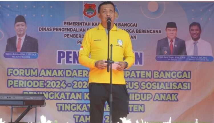 BANGGAI, OKENESIA.COM- Penjabat Sementara (Pjs) Bupati Banggai, Raziras Rahmadillah, S.STP., M.A., menghadiri dan membuka secara resmi kegiatan Pengukuhan Forum Anak Daerah Tingkat Kabupaten Banggai Periode 2024-2026, sekaligus Sosialisasi Peningkatan Kualitas Hidup Anak tingkat Kabupaten Tahun 2024.