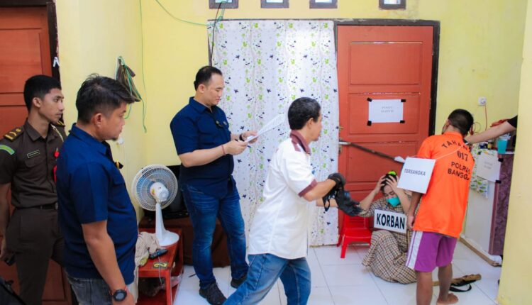 BANGGAI, OKENESIA.COM- Penyidik Unit Perlindungan Perempuan dan Anak (PPA) Satreskrim Polres Banggai menggelar rekonstruksi kasus pembunuhan IRT di Desa Pangkalaseang, Kecamatan Balantak Utara, Kabupaten Banggai, Sulteng, Kamis (7/11/2024) sore.