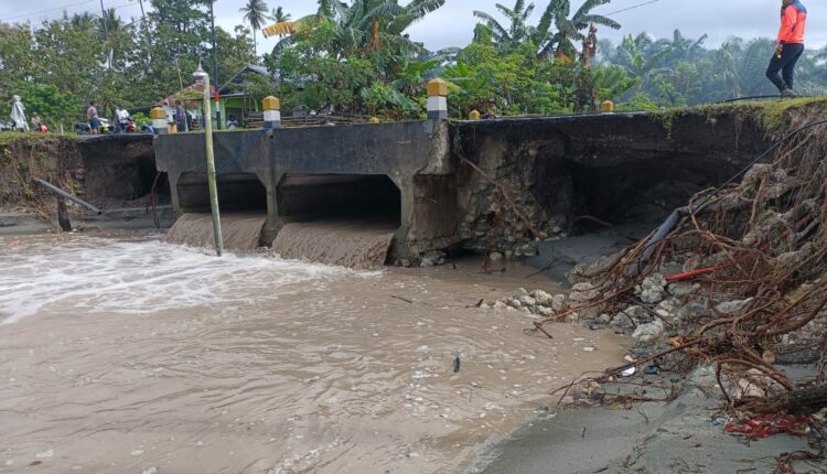 BANGGAI, OKENESIA.COM – Jembatan kecil penghubung antara Desa Solan dan Desa Dimpalon Baru, Kecamatan Kintom, Kabupaten Banggai nyaris roboh, akibat tak mampu menahan derasnya air curahan hujan yang terjadi pada Selasa 1 Agustus 2023 malam.