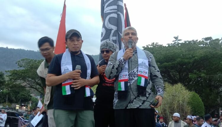 BANGGAI, OKENESIA.COM- Umat muslim yang bermukim di Jalur Gaza, Palestina, tak akan sedikit pun meninggalkan tanah mereka dan akan tetap bertahan menjaga Masjid Al-Aqsha, masjid yang diberkahi, meskipun nyawa menjadi taruhannya. Pesan tegas ini disampaikan aktivis Palestina, Dr. Ahed Abu Al-Atta saat menjadi orator penutup di aksi bertajuk Banggai Peduli Palestina sekaligus mengumpulkan donasi yang dipusatkan di bundaran Tugu Adipura, Kota Luwuk, Kabupaten Banggai, Ahad (22/10/2023) sore.