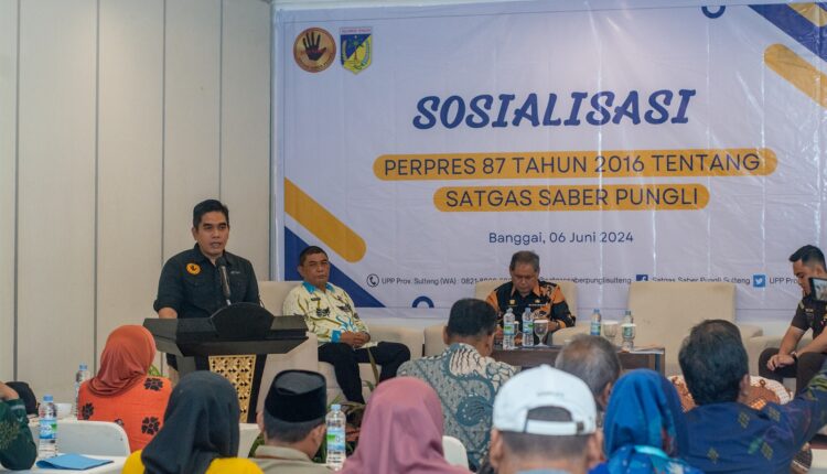 BANGGAI, OKENESIA.COM- Sekretaris Kabupaten Banggai Ir. H. Abdullah, M.Si mewakili Bupati Banggai, Kamis (6/6/2024) membuka kegiatan Sosialisasi Satgas Saber Pungli yang dilaksanakan oleh Unit Pemberantasan Pungli (UPP) Provinsi Sulawesi Tengah di Hotel Santika Luwuk.