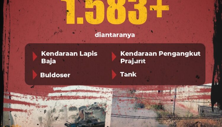 Laporan tersebut menyebutkan bahwa sebanyak 1.583 kendaraan tempur militer Israel hancur, termasuk kendaraan lapis baja, buldozer, kendaraan pengangkut prajurit, dan tank.