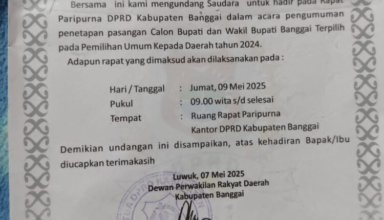 BANGGAI, OKENESIA.COM- DPRD Banggai, Jumat (9/5/2025) mengagendakan menggelar rapat paripurna penetapan calon bupati dan wakil bupati Banggai terpilih.