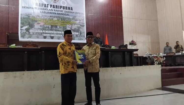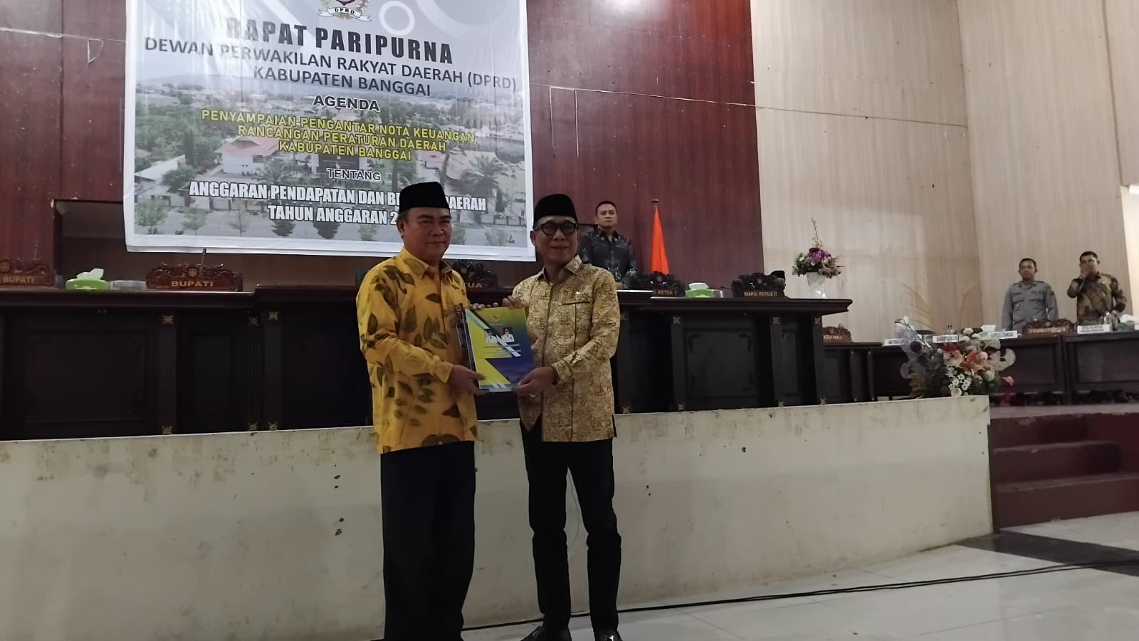 BANGGAI, OKENESIA.COM- DPRD Banggai menggelar rapat paripurna dengan agenda penyampaian pengantar nota kokeuangan Rancangan Peraturan Daerah tentang Anggaran Pendapatan dan Belanja Daerah (APBD) Tahun Anggaran 2026, Selasa (25/11/2026), di Graha Dongkalan, Luwuk.