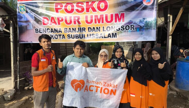 Di Kota Subulussalam, tim Relawan Rumah Zakat menyalurkan bantuan sembako ke dapur umum Desa Suka Maju, Kecamatan Sultan Daulat, Selasa (2/12/2025).