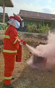 Para peserta dilatih menggunakan APAR serta melakukan simulasi pemadaman api di lapangan untuk meningkatkan kesiapsiagaan secara teknis.